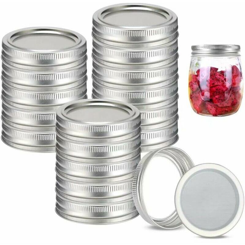 acqua gassata, caramelle, ecc., in modo che il cibo possa essere conservato a lungo senza inquinamento atmosferico. Garanzia di qualità - Se non sei soddisfatto dei nostri coperchi per barattoli di vetro, supportiamo i resi dei pacchi. Ti auguriamo una buona esperienza di acquisto. Caratteristiche: Dimensioni: 7 cm. Contenuto: 24 coperchi per lattine + 24 anelli. < p>Peso