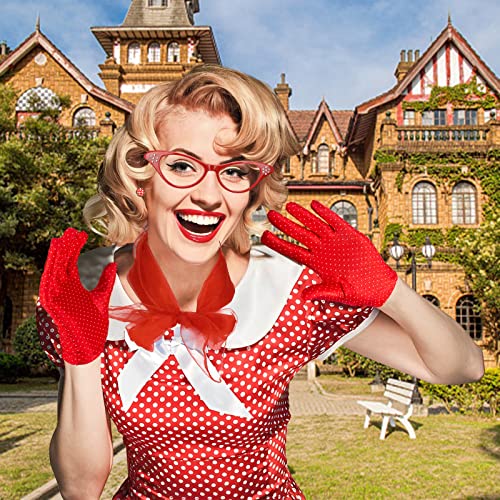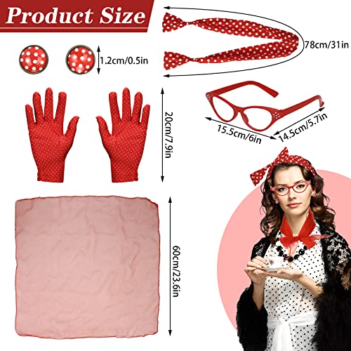 Accessori Anni 50 Donna Vintage, Costume Anni 50 Accessori Includi Occhio di Gatto, Sciarpa in Chiffon, Orecchini, Guanti a Pois, Fascia per Capelli, Pin Up Accessori, Accessori Anni 50 Grease (Rosso)