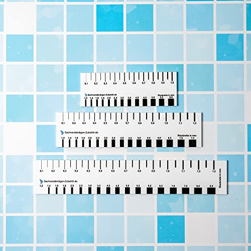 ✔️ UTILIZZABILE SU DUE LATI - Le carte si utilizzano posizionandole sopra la fessura da misurare. Confrontandolo con la larghezza della linea appropriata, è possibile leggere e documentare la larghezza della fessura.