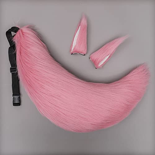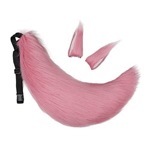 Set di accessori fatti a mano con orecchie di volpe e coda di volpe con clip per capelli per cosplay e feste di Halloween (rosa)