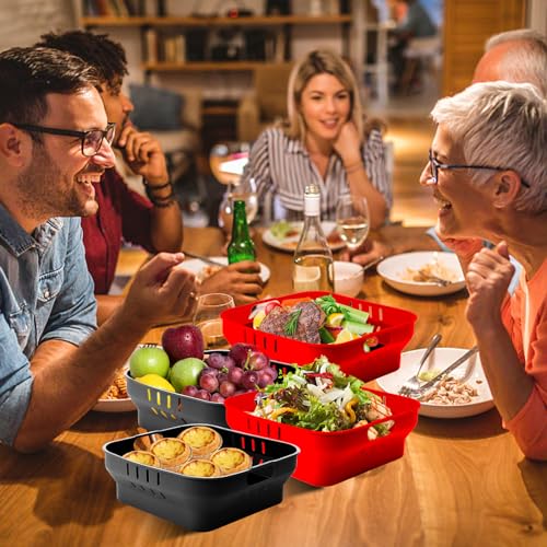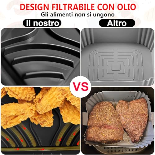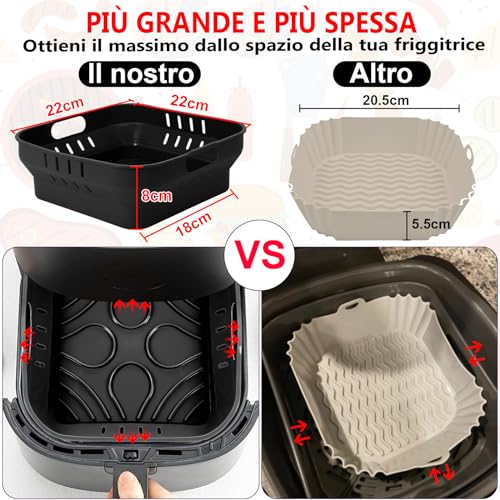 22cm Accessori Friggitrice ad Aria in Silicone, 4PCS Teglie Friggitrice ad Aria Quadrata XXL Airfryer per COSORI 5,5L, Cecotec 6L, Princess 5,5L, Air fryer, Pieghevole Riutilizzabile