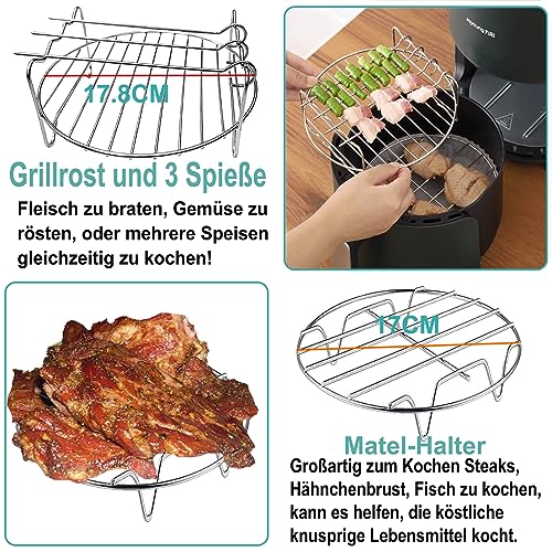 19CM Accessori Friggitrice Ad Aria Set Di 7, Teglie Cestino per Friggitrice ad Aria, kit Friggitrice Ad Aria per Cosori Xiaomi Ariete Midea Proscenic Aigostar 3,5L Airfryer