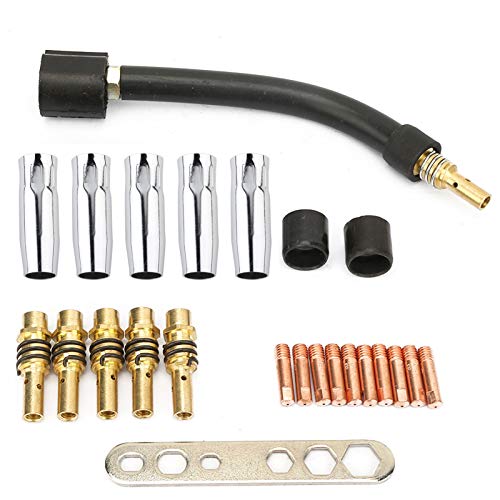 Kit accessori per materiali di consumo per torcia per saldatura, 24 pezzi Parti per torcia per saldatura Punta di contatto Supporto ugello per gas Collo a cigno per Binzel 15AK