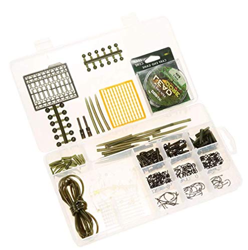 Kit di accessori per la pesca alla carpa, inclusi arresti di boilie, maniche, clip di sicurezza per la carpa, clip girevole a cambio rapido, tubo per affondamento, gancio a gambo curvo, LeadCore