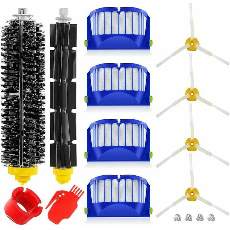 Questo kit di accessori di ricambio è compatibile con iRobot Roomba 600 610 614 620 625 630 635 640 645 650 655 660 665 670 671 680 690 691. Ogni confezione include 4 filtri, 4 spazzole laterali, 4 spazzole laterali, 4 x viti, 1 x spazzola a setole, 1 x spazzola fxib, 2 x attrezzature per la pulizia. La spazzola principale per rimuovere sporco, polvere e detriti può essere rimossa e pulita autonomamente. Sono inclusi due strumenti di pulizia per rimuovere peli e sporco dalla spazzola principale.