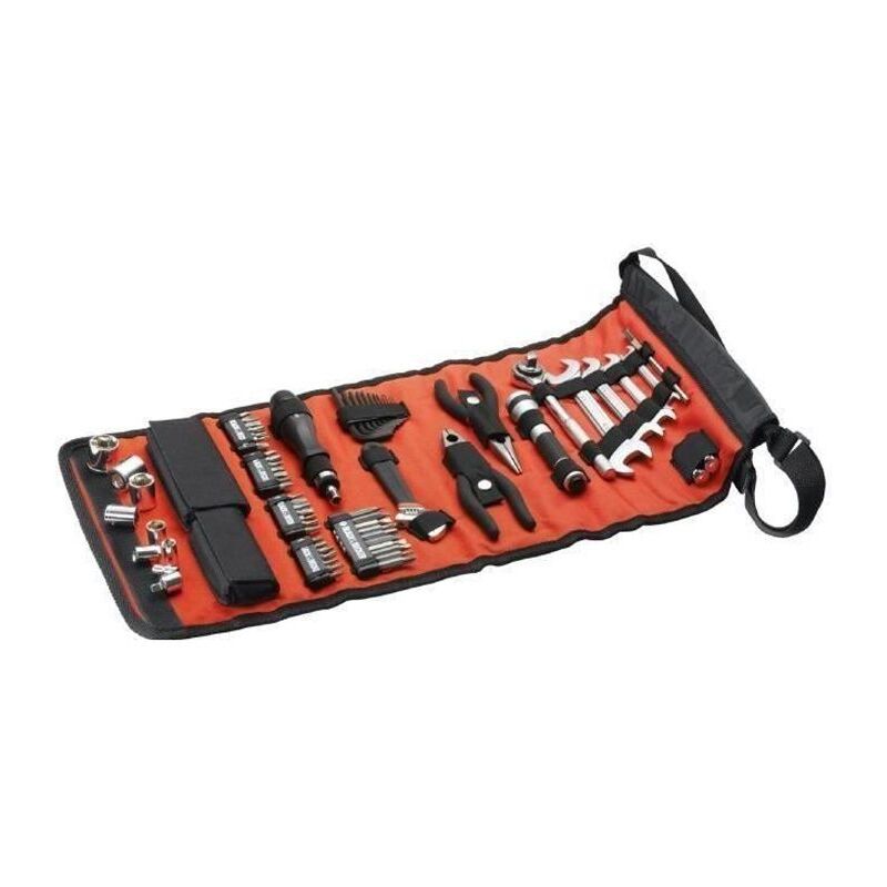 Sacchetto arrotolabile 71 con accessori compreso cacciavite con 25mm bit vite e 50 mm, chiavi kit 12 esagonali, chiavi 6, 1 1/2 lunghe pinze tonde, 1 pinze, chiave, presa 8, un adattatore prese, cacciavite cricchetto, magnetico pick-up e torcia con due batterie AA.