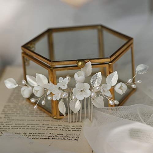 Accessori da sposa Perline Perline Pettini per capelli in porcellana Spilli Fiore Foglia Copricapo Forcine per capelli color oro Donna Sposa Gioielli da sposa