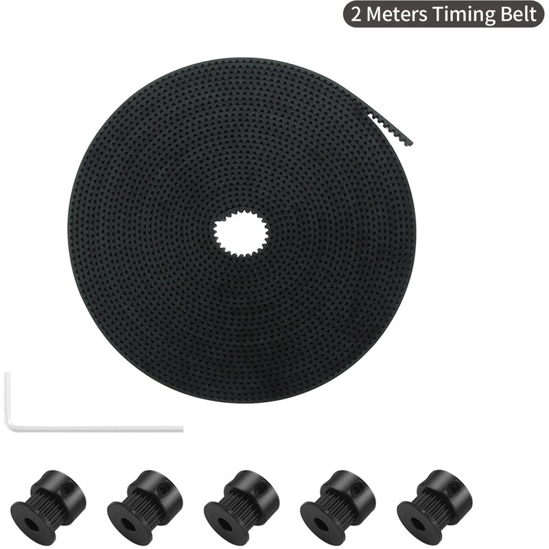 Caratteristiche: La cinghia di distribuzione è realizzata in gomma di prima qualità, di migliore qualità e più resistente. Progettato specificamente per il movimento lineare, elevata precisione di posizionamento. Contatto della ruota della puleggia a 20 denti con la cinghia, che riduce al minimo il rischio di slittamento della cinghia. La puleggia e la cinghia GT2 sono usate insieme, molto comode da usare. Compatibile con la maggior parte delle stampanti 3D. Specifiche: -GT2 Cinghia di distribuzione Colore nero Materiale: gomma Lunghezza: circa 5 metri / 2 metri (opzionale) Larghezza: 6 mm -GT2 Puleggia Ruota Materiale: metallo Denti: 20 Diametro del foro: 5 mm Lista imballaggio: 1 * Cinghia di distribuzione (2 metri) 5 * Pulegge 1 * chiave inglese
