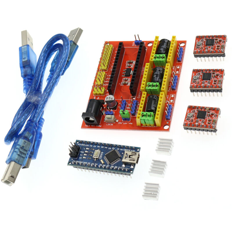 Questo set include 1 scheda di sviluppo, 1 scheda di protezione CNC, 4 stepper, 1 fila di pin a 40 pin e 1 cavo. Due specifiche disponibili, puoi scegliere il set A4988 o il set 8825 in base alle tue esigenze. Rispetto al 4988, i vantaggi di DRV8825 sono: supporto di corrente da 2,5 A, supporto della modalità stepping 1/32, design del circuito stampato a 4 strati, con migliori prestazioni di dissipazione del calore. La resistenza interna del chip è minore, bassa generazione di calore, buona dissipazione del calore. Caratteristiche: Consiglio di sviluppo: Il design dello schema elettrico è aperto e l'interfaccia del software di sviluppo può essere scaricata gratuitamente oppure è possibile modificarla in base alle proprie esigenze. Sensori e vari componenti elettronici possono essere collegati facilmente. Utilizzando un controller a microprocessore ad alta velocità (ATMEGA328), l'interfaccia di sviluppo e l'ambiente sono molto semplici e di facile comprensione, molto adatti ai