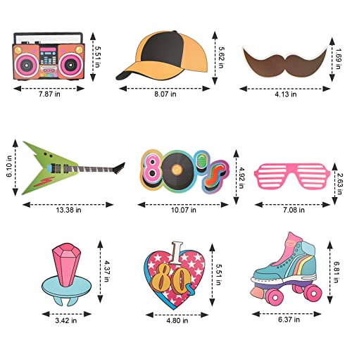 Accessori fotografici alla moda: bellissime immagini creative sono il modo perfetto per commemorare il tuo evento speciale. Il nostro lussuoso kit per tagliare la carta per cabine fotografiche è il complemento perfetto per le tue celebrazioni degli anni '80!
