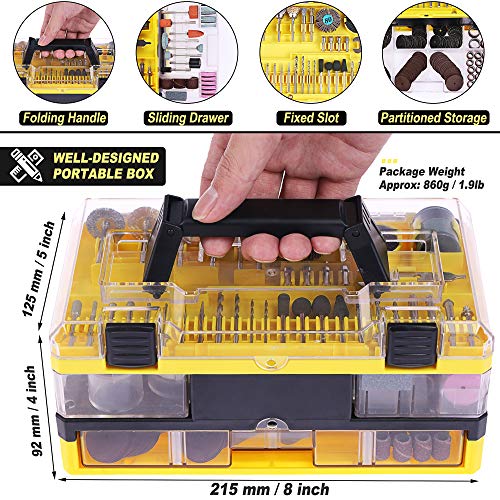 【SET DI ACCESSORI ROTANTI DA 349 PEZZI】: Questo kit completo di accessori rotanti include mola in ossido di alluminio, disco da taglio, gambo di levigatura, ruota di stoffa, kit di lucidatura, taglierina HSS e così via.