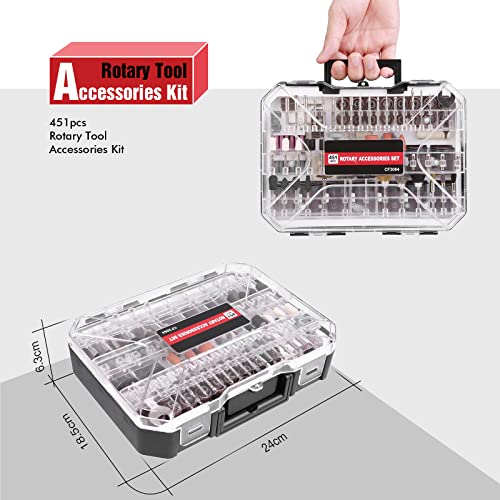 Accessori per Utensili Rotanti Kit 451 pezzi, Codolo 1/8" Set di Accessori Multiuso Universale con Custodia per Incisione, Levigatura, Intaglio, Foratura, Lucidatura, Taglio e Fai da te