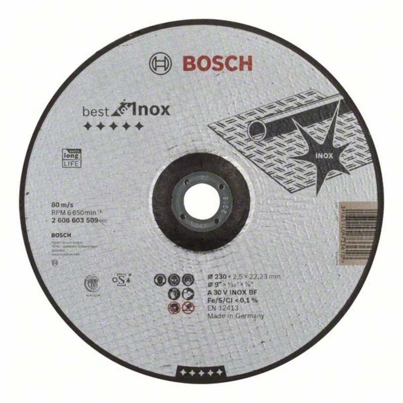 Dettagli tecnici Contenuto 1 pz. Dimensione, Ø 230 mm Dimensioni (Ø) 230 mm Idoneità del materiale Acciaio Spessore 2.50 Tipo prodotto Disco da taglio con centro depresso Ø foro 22.23 mm Disco da taglio curvo Best for Inox A 30 V INOX BF, 230 mm, 2,5 mm Il disco da taglio Best for Inox ha una durata superiore durante il taglio in acciaio inox. Il disco è dotato di mole abrasive incapsulate in ceramica. In questo modo è particolarmente resistente all'usura e garantisce un'elevata qualità in modo uniforme con una minima formazione di grate o scolorimento del blu. Il disco è privo di ferro, zolfo e cariche clorurate. Il tessuto in fibra di vetro di precisione garantisce un'elevata stabilità e sicurezza durante il taglio. Utilizzare questo disco per tagliare l'acciaio. Per le mole di taglio angolari Bosch, i più elevati requisiti di sicurezza come EN 12413, FEPA e osa. Specifiche: A 30 V INOX BF, diametro mm: 230, diametro foro mm: 22,23, spessore mm: 2,5 Testo tradotto automaticamente