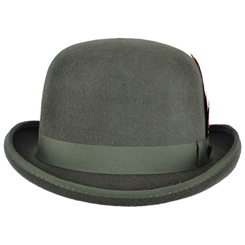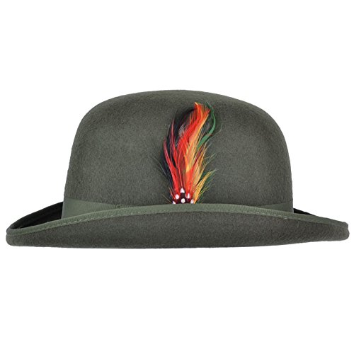 Maz Accessories - Cappello da bowler in feltro di lana con piuma, foderato in raso
