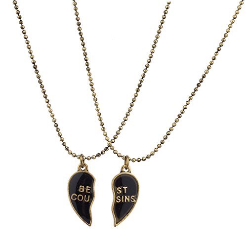Lux Accessories, set collana (2 pezzi) a forma di cuore, in oro lucido, staccabile, con scritta in inglese "best cousins"