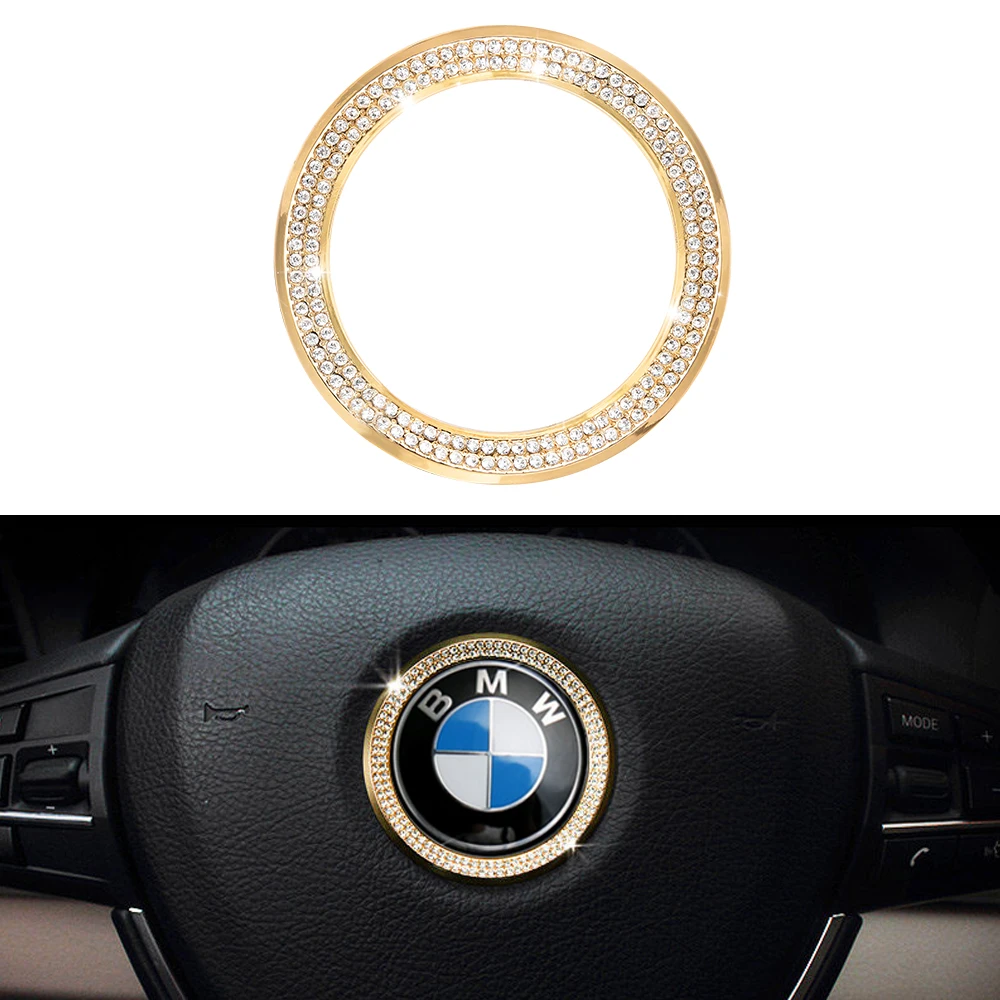 Accessories for BMW Steering Wheel LOGO Cap Covers Decal Stickers Bling Interior Visors Decorations 3 4 5 6 Series X3 X5 Crystal