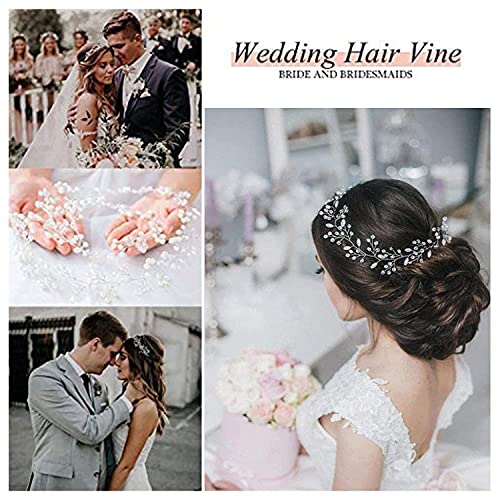 Accessorio per capelli da sposa. Fiore per capelli da sposa, in argento, con perle extra lunghe e perle di cristallo, gioiello per capelli bianco con foglie, strass, damigella d'onore (50 cm)