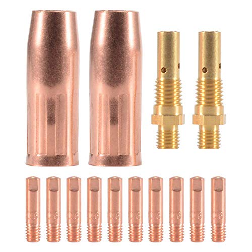 Accessorio per saldatura MIG - 10pcs punte guidafilo M6 (0,8x25mm) + 2pcs ugello per gas + 2pcs supporto per punte
