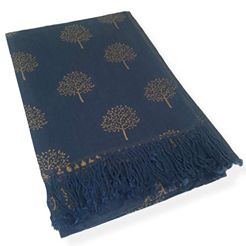 The Accessory Co - Sciarpa da donna con albero di gelso, sciarpa da donna, sciarpa a forma di albero della vita, sciarpa invernale lunga, grande sciarpa invernale da donna Blu Oro 90