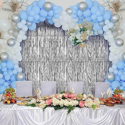 Accevo Tende Metalliche Tinsel Argento.3 Pezzi 1x2.5M Tenda Frange Argento Tenda Sfondo Fotografico per Sfondo Compleanno Happy Birthday Decorazioni Matrimonio Natale Decorazioni Compleanno.