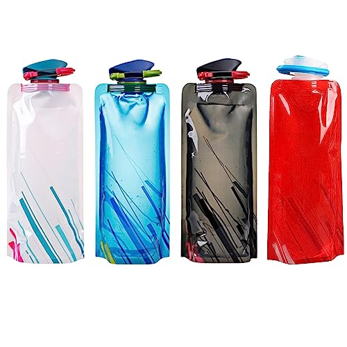 Accfore Foldable Water Bottle Set of 4, Flexible Foldable Reusable Water Bottles For Hiking,Travel,Adventure,700 ml