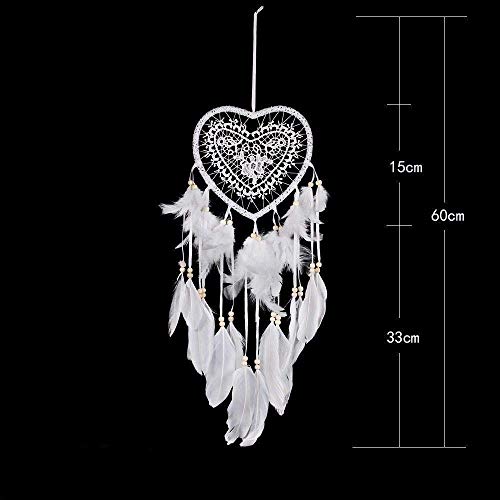 Acchiappasogni Bianco con Vere Piume e Perline di Legno/Cuore acchiappasogni Realizzato a Mano con Pizzo.