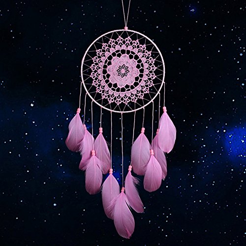 Acchiappasogni grande fatto a mano con piume, merletto e perline- acchiappasogni decorazione da appendere ornamentale, perfetto come regalo Pink