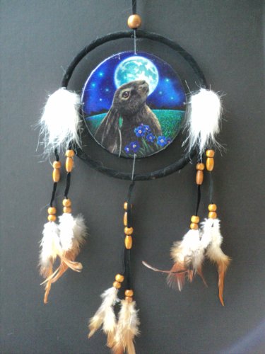 Acchiappasogni piccolo con stampa lepre che guarda la luna