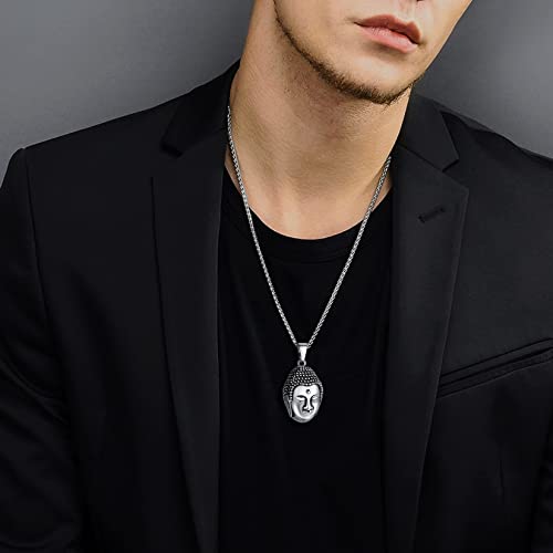 U7 Acciaio Collana Testa di Buddha in Acciaio Inossidabile Gioielli con Collana Buddista