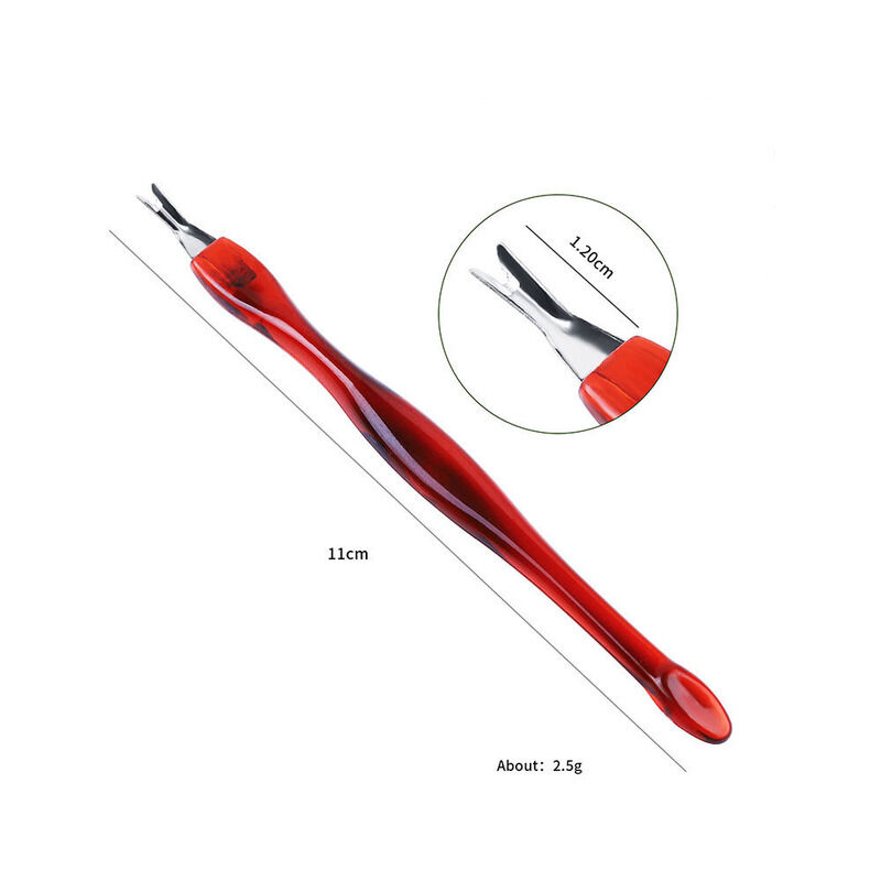 Marca: Navolution Dimensioni: 11cm(4.33 pollici) Questo Unghie Artistiche Strumenti di Pedicure Della Cuticola Trimmer di Rimozione Pusher Pelle Morta Rimozione Del Callo Forcella Marrone Pusher Dual-end per la spinta e il taglio del chiodo della cuticola. Adatto per il salone professionale o uso della casa. Il cucchiaio-come end (curva-end) viene utilizzato per la spinta cuticole-il design facilmente aiuta a modellare le cuticole. La lama graffi il hard-to-rimuovere i residui di residui di pelle sul chiodo e di grande per la rimozione della colla quando si utilizza le unghie acriliche.