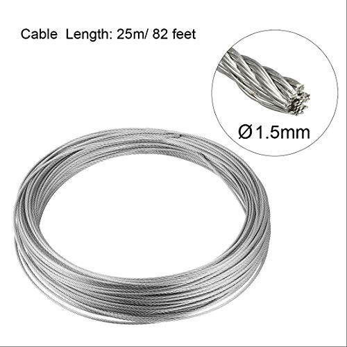 Cavo in acciaio inox, 1,5 mm, diametro 82 mm, lunghezza 25 m, calibro 304 per il sollevamento del paranco