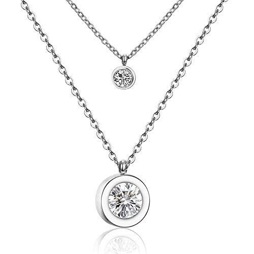 Collana a doppio strato, in acciaio inox, 316L, per donne e uomini, con zirconi multistrato, collana
