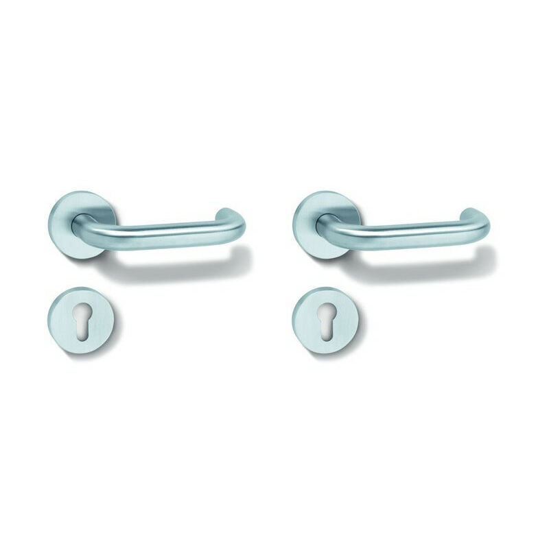 Con penna divisa · in H-Technik secondo DIN 18255 e DIN EN 1906 in acciaio inossidabile, superficie opaca · composto da: maniglia porta 111XAH, diametro 21,3 mm, rosette rotonde 305.21XAH e 306.23XAFS, con modulo di tenuta integrato con supporto a molla · Pusher soddisfa i requisiti di DIN EN 179 e DIN 18040 · Categoria d'uso: Classe 4 · Set antincendio con perno quadrato 9 mm, secondo DIN 18273 · Resistenza al fuoco: Classe B1 · Proposta di esecuzione! Si prega di controllare tutte le dimensioni e le condizioni strutturali in caso di ordine! Altre caratteristiche tecniche: · Cuscinetto: cuscinetto esente da manutenzione · Quadrato: 9mm. Materiale: acciaio inox, sistema di fissaggio: perno antincendio, n. colore: acciaio inossidabile rettificato opaco, superficie: terra opaca, marca: HEWI, perforazione: PZ - cilindro profilato, design: set antincendio, per spessore porta: 48,1 - 58,0 mm, direzione del contatto: DIN sinistra / destra