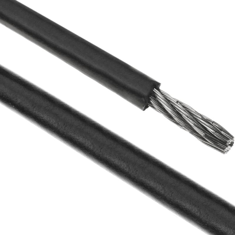 Cavo in acciaio inossidabile rivestito in plastica nera. Cavo intrecciato semirigido in acciaio inox con rivestimento in plastica nera ad alta resistenza. Consultare la gamma di accessori speciali per la corretta installazione di questo cavo d'acciaio (graffette, copricavi, ecc.). Specifiche Cavo intrecciato semirigido in acciaio inox con rivestimento in plastica nera ad alta resistenza. Consultare la gamma di accessori speciali per la corretta installazione di questo cavo d'acciaio (graffette, copricavi, ecc.). Sezione esterna del cavo: 3 mm. Sezione interna del cavo: 2,5 mm. Tipo di acciaio: 304 A2. Materiale esterno: PVC Avvolgicavo da 50 mt. Peso supportato: 95 kg.