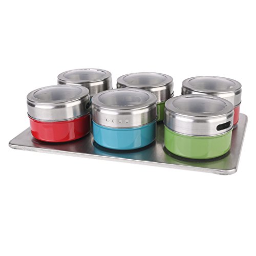 Acciaio inossidabile magnetico Spezie glser con stander, 6 pezzi da cucina Menage Storage Jar Tray Set