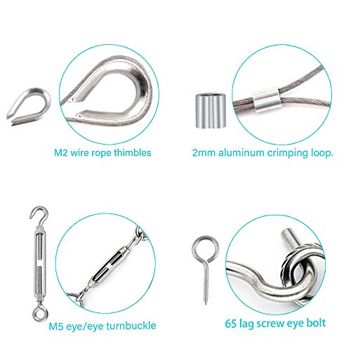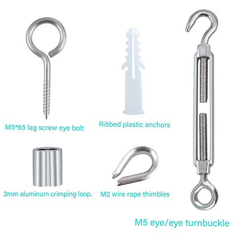 Facile installazione: il collegamento tra la vite per legno e il tenditore a vite è regolabile. Crimpare solo lo strumento per manicotti in alluminio e il tagliacavi per completare la ringhiera del cavo del ponte.