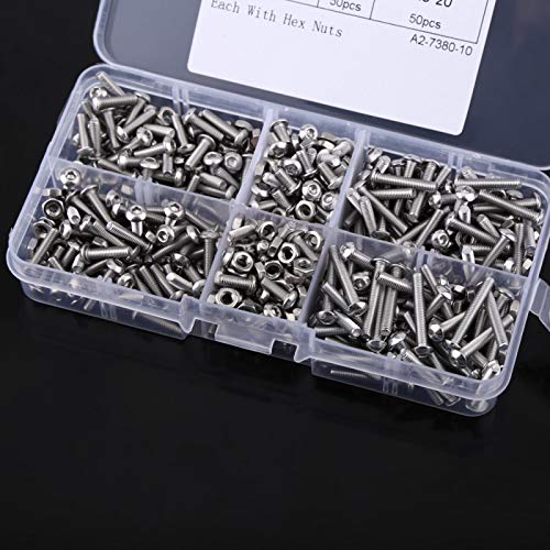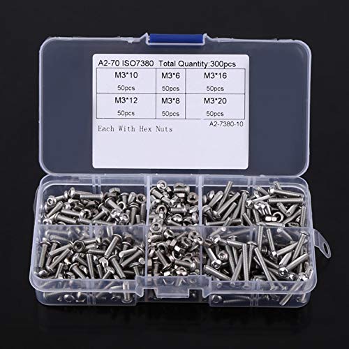 Viti dadi, 300 pz M3 acciaio inossidabile M3 testa a bottone esagono incassato viti kit assortimento con dadi esagonali bulloni