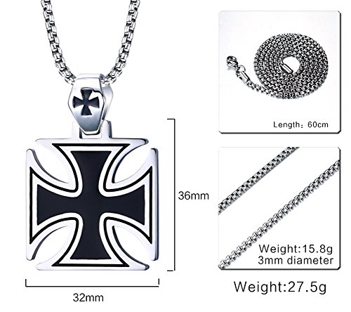 Vnox Acciaio inossidabile degli uomini la collana del pendente Templari Croce d'argento nero,catena libera