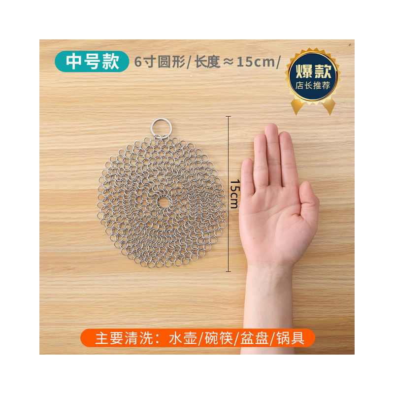 316 in acciaio inox macchie ostinate piccoli anelli Chainmail Cleaner rondelle in ghisa Scrubber a catena per piastra padella Wok,15cm