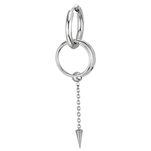 Acciaio Orecchini a Cerchio con Aperto Cerchio, Pendenti Lunga Catena Spillo Cono e Perlina, Orecchini da Uomo Donna