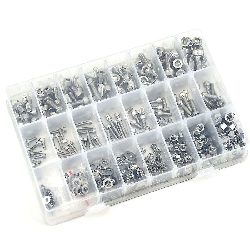 Questo kit comprende 520 viti di diverse dimensioni: M3*8, M3*12, M3*16, M3*20, M4*8, M4*12, M4*16, M4*20, M5*8, M5 * 12, M5 * 16, M5 * 20, M6 * 8, M6 * 12, M6 * 16, M6 * 20. soddisfano perfettamente le tue esigenze. È un kit indispensabile per la famiglia. Viene fornito con dadi e rondelle. Dadi e rondelle piatte aiutano ad espandere lo spazio di contatto e ridurre la pressione per proteggere viti e parti, soddisfacendo al massimo le varie esigenze dei professionisti.. Materiale in acciaio inossidabile 304 di alta qualità, antiossidante, resistente alla corrosione, mai ruggine, stabile e durevole.. Esagono standard, filettatura profonda, forza uniforme, non facile da scivolare durante il processo di filatura, lavorazione eccellente, dorso liscio e piatto, resistente. Con una scatola, tutte le viti, i dadi e le rondelle sono riposti in modo ordinato, puoi trovarli facilmente quando necessario. L'uso principale della vite esagonale in acciaio inossidabile è ampiamente utilizzato.