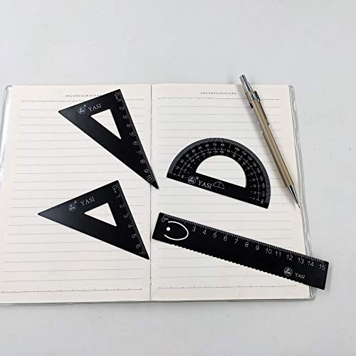 Realizzato in lega di alluminio più resistente del righello in plastica. Il set include un righello dritto da 15 cm in acciaio inox da 60° e 45° e un goniometro.