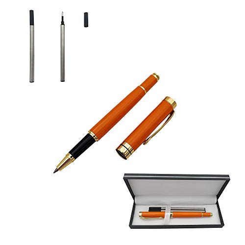 Accod Signature Pen Premium Metal Roller & Penna a sfera Creative Gift Pen con due ricariche 0,5 mm nero sostituibile astuccio di alta qualità regalo per familiari amici e colleghi (arancione)