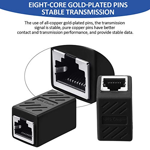 Accoppiatore RJ45, Connettore di Rete dell'Adattatore di Estensione Ethernet per Cat7/ Cat6/ Cat5e/ Cat5, Accoppiatore Cavo di Rete Ethernet Femmina a Femmina (Nero, 5 Pezzi)
