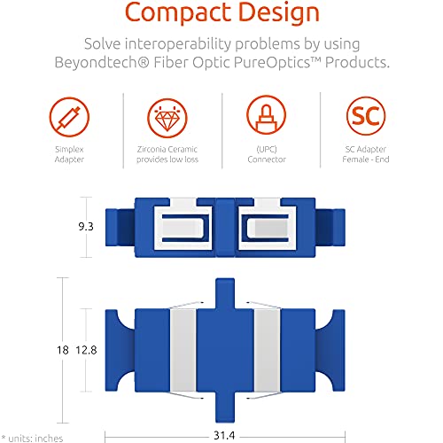 beyondtech accoppiatori in fibra ottica Adapter Single Mode è stata progettata appositamente per fornire una precisa Simplex cavo in fibra ottica per connessione via cavo o patch cord (9/125) connessione alle attrezzature.