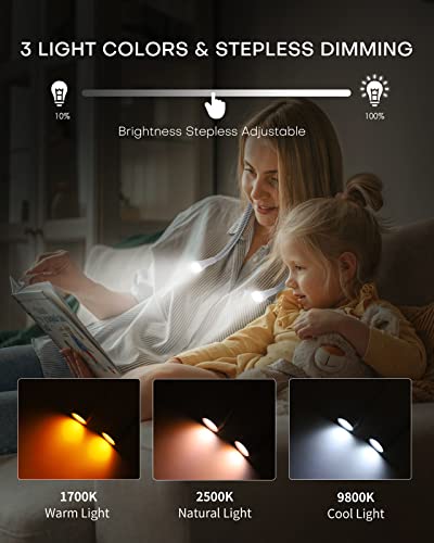 【3 Colori di Luce e Stepless Dimming】: Questa lampada lettura da collo non solo ha 3 modalità di colore (Premere brevemente per regolare il colore della luce:luce bianca, luce calda, luce naturale), anche la luminosità può essere regolata (Premere a lungo per regolare la luminosità della luce:regolazione della luminosità del 10% -100%). Ci sono interruttori separati per le teste luminose sinistra e destra, che possono fornirti luce senza disturbare gli altri.
