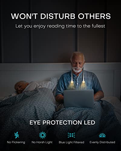 【Disegno Umanizzato】:Questa lampada da lettura per libri ha bracci flessibili a 360° che puoi regolare liberamente l'angolo di luce. Insieme al design con angolo del fascio stretto di 90°, può illuminare facilmente qualsiasi area che desideri illuminare senza causare disturbi di illuminazione al tuo partner.