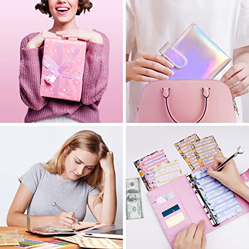 ✨【Set completo】 I prodotti includono: 1* raccoglitore ad anelli, 12* buste per contanti in PVC trasparente, 12* schede di bilancio con motivi di frutta, 3* note adesive colorate, 2*21 etichette adesive colorate, 2* adesivi per lettere, 1*10 adesivi per etichette colorate, 2* clip dorate, 1* penna neutra a forma di diamante