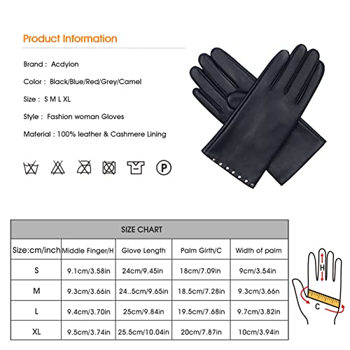 Acdyion Guanti invernali da donna in pelle touchscreen, caldi, in cashmere, eleganti, slim fit, in vera pelle, invernali, per il tempo libero, Blu, M