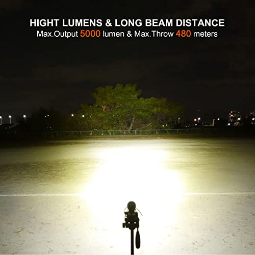 【Lanciatore a lunga distanza】Torcia tattica ACEBEAM L 18 adottata CREE LED, con lente in PMMA aggiornamento rende il fascio più lontano e luminoso. Max tiro 480 metri e luminosità 5000 lumen torcia elettrica.